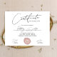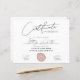トレンディーエレガントスクリプトフォントとピンクのワックススタンプを備えた完成フェミニン証明書。感謝、賞またはカスタム卒業証書の証明書を作成するのに最適。このプロフェッショナルコース認定証モダン書のフォント、レイアウトミニマルと、ロゴやイニシャルの宇宙を持つ赤面ピンクのワックスシールのバッジを備え、達成デザインの証フェミニン券を作成する。