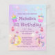 1歳スタイリッシュ目の誕生日カラフルユニコーンとカップケーキ、紫色の書道のカラフルガーリー招待あなたは色とスタイルのために変更することができる。