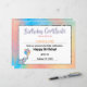 誕生日は、毎年楽しみにしている特別な節目です。この記念すべきお祝いを、誕生日絵の「パステルカラーのゾウさんの風船の誕生日証明書」デザインでスタートさせましょう!お子様の詳細情報を入れて、オリジナルの証明書を作ってみてください!
