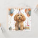 お誕生日ケーキと風船を囲む誕生日の帽子をかぶったゴルデンドール犬の可愛い漫画イラストレーション。愛犬や愛犬の両親に最適。