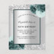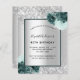 銀フェイクの背景飾に緑の花と銀のフェイクグリッター、キラキラ。名前とパーティー・詳細のパーソナライズおよび追加黒文字。