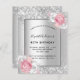 銀フェイク色の背飾景はバルガンとピンクの花模様、花と銀のグリッターとフェイク、きらめきを持つ。名前とパーティー・詳細のパーソナライズおよび追加黒文字。