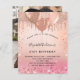 バラ金ゴールドと赤面ピンクのグラデーション背景。バラ飾金ゴールド、ピンクフェイクのグリッタードリッ絵を描プ、ドリップの外観と風船と。名前とパーティー・詳細のパーソナライズおよび追加名前は手書入力のスタイルスクリプトで指定する。背面に写真を追加。1枚= 1枚の招待状を印刷したエッジからエッジ