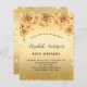 40モダン歳スタイリッシュ(または任意の年齢)の誕生日パーティーのための魅力的な招待 – 金ゴールドのグリッターの塵とフェイクバラ、花模様の金ゴールド背景。名前は手書文字のスタイルスモダンクリプト付き。カスタマイズしてパーティー詳細を追加する。