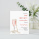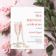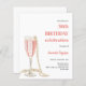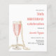 真珠とプロセモダンコの誕生日パーティー(任意の年齢)のためのスタイリッシュA,と華やかな招待状ガラスと白い背景,ピンクの泡と真珠とフルート。名前は手書文字のスタイルスモダンクリプト付き。カスタマイズしてパーティー詳細を追加する。1枚= 1枚の招待状を印刷したエッジからエッジ