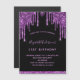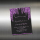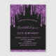 21ガーリー日(まフェミニンたは任意の年齢)の誕生日パーティーの招待。シックな黒の背景。暗飾紫のフェイクグリッタードリッ絵を描プとして。名前とパーティー・詳細のパーソナライズおよび追加名前は手書で書いたスタイルの台本と淡い紫の色の文字。