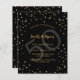 彼と彼女の両方のための華やかな誕生日パーティーの招待。黒い背景飾に金ゴールド星。名前とパーティー・詳細のパーソナライズおよび追加金色の文字。ウォーターマークとしての経過日数。バック:黒い背景と黄金の星。1枚= 1枚の招待状を印刷したエッジからエッジ