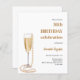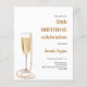 真珠とプロセモダンコの誕生日パーティー(任意の年齢)のためのスタイリッシュA,と華やかな招待ガラスと白い背景,金の泡と真珠とフルート。名前は手書文字のスタイルスモダンクリプト付き。カスタマイズしてパーティー詳細を追加する。1枚= 1枚の招待状を印刷したエッジからエッジ