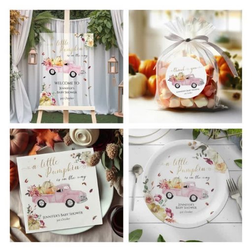 Little Pumpkin Vintage Fall Pink Truck Baby Showerデザイン: CaMi Designs