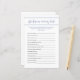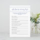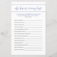このモダンなベビーシャワー予想ゲームは、あなたのかわいいピーナッツまたは象のテーマのベビーシャワーに最適です。 ゲストが誰がママのことを一番知っているかを調べる、楽しい穴埋めゲームでママトゥビーをお祝いしましょう。 当店では、ブルーエレファントリトルピーナッツベビーシャワープロダクトとコーディネートしています。 このテンプレートのテキストをパーソナライズしてください!