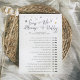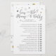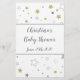 白い背景にグレーと金ゴールドの星が付いたスクリプトモダンフォントを備え、男の赤ちゃん、ベビーガールやサプライズに最適なベビーシャワーゲームカード!このカードを使って性別を明かすパーティー!