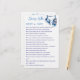 それは男の子の青のベビーシューズキャップシンプルの水の色のフォントモダン誰のママやパパの赤ちゃんシャワーのゲームカードを推測する。男の赤ちゃんの赤ちゃんシャワーゲーム。注意:ゲームの質問はAI生成され、慎重に読調整して、必要に応じて調整もしする