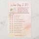 このおもしろいブライダルシャワーゲームは、あなたのゲストが花嫁と新郎を知っていることをテストする。お客様は、それぞれのアイテムが花嫁の話の一部であるか、花婿の両方であるかを推測する必要がある。ゲームは完全にカスタマイズ可能なので、あなた自身の項目を入力するか、私達が提供したアイテムを使用することができる。赤面のピンクと桃の色のアートワークは、開いた本のページにバランスの取れた婚約リングの可愛い水色を含み、近くにピンクのバラとハート型の影を形成する。本をテーマにしたブライダルシャワー!