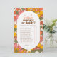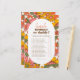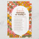 レトロな推測 – 誰が私たちの"こんにちはベビー | Groovyレトロ花Boho Baby Shower"招待状。このページにリンクされているコレクションを表示して、一致するアイテムを検索する。このデザインは、中央に白い楕円形のオーバーレイを持つ溝状のフローラルパターンの背景を特徴とする。ブラウン、イエロー、オレンジ、クリーム、グリーンの暖かいヴィンテージ色のパレットは70sの与えtouchです実在。花デイジー柄は手描きの漫画スタイルの花のパワーパターンで、色とはっきりした強い輪郭が70年代のヒッピースタイルにマッチする。楕円形のフレームの中には、あなたの選択の15質問のための宇宙がある。
