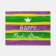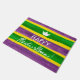 湾海岸に沿う謝肉祭は大きいお祝いです。 この玄関マットは祝いの色を反映します--若草色、紫色、および金ゴールド。 ストライブ柄は絵を描きました金ゴールドの背景に加えられた水彩画を手で作成されました。