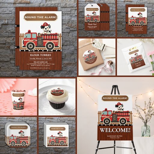 警報祝音で準備しろ!モダン消防車の赤ちゃんシャワーコレクシはっきりしたョン、消防士の要お洒落素、デザインを搭載したコンテンポラリー。クラシック消防士のテーマにシックでツイストを愛するファイアハウスの家族や親に最適!他のもし一致する製品またはカスタマイズが必要な場合は、親切にZazzle経由でメッセージ。