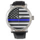警察の細い青い線の国旗アメリカ統一された州 腕時計