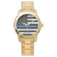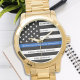 警察の退職ギフト薄い青い線フラグ金ゴールド 腕時計