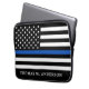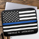 薄型ブルーラインノートパソコンスリーブ – 米国国旗の色、黒モダンと青のデザイン。警察官名でパーソナライズ。この警パーソナライズされた官ラップトップスリーブは警察署に最適だ。COPYRIGHT © 2020 Judy Burrows, Black Dog Art - All Rights Reserved.警察官薄パーソナライズされたブルーラインラップトップスリーブ