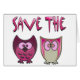 2羽のピンクのフクロウが付いている警笛を救って下さい