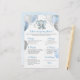 この愛らしい赤ちゃんシャワーゲームは、風船と紙吹雪を持つ青と灰色の男の赤ちゃん象を特徴としている。電話のアイテムをチェックして、ポイントを追加する。背中には象が付パーソナライズされたき、柔らかい青い水色の背景に名前とシャワーの日付を母と一緒。カスタマイズの「パーソナライズ」によクリックり、イベントを簡単に実現