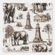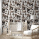 この豪華な壁紙は、灰色のアフリカ象のセットと小さなランドマークや彫像を備えている。