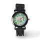 ワニ、サル、蝶、滝を含むタブローのジャングルの穏やかな巨人。グリッター時計のストラップは赤、ピンクまたは銀。