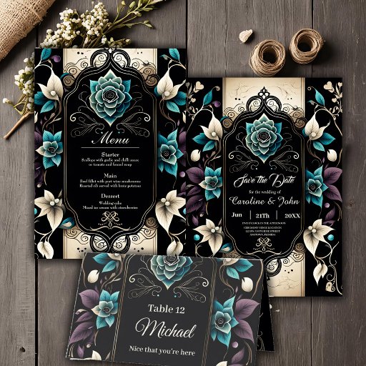 高級エレガントで洗練されたフローラデザイン。花やの繊細なパタ葉ーンは、招待状の端を形成し、優雅なtouchを追加する。