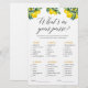 あなたの夏や春ブライダルシャワーに優雅なtouchを追加する準備ができて私たちの財布の中でwhatsレモンブライダルシャワーテーマゲーム。このカスタマイズ可能なウェディングシャワーゲ素晴らしームカードは水色彩の鮮やか色の手のレモンと書を備えエレガントて、あなたのお祝いに完璧な追加をする。