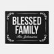 賛美された家族の玄関マット、単語は、"エレガントで白く装飾的なフレームとの白の姓のためのカスタムな区域の家族"を賛美しました。 背景はこのデザインで黒かったりしかしあらゆる色にカスタマイズことができます。