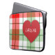 クリスマス色と、赤いおよび緑の格子縞パターンおよびハートのラベル造られるラップトップスリーブ。 あなたの名前のラップトップスリーブか他の選択間のあなた自身の文字をカスタマイズ。