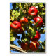 この季節的な芸術のブランクのメッセージカードはおいしく赤いりんごのりんごの木の秋場面を、緑の葉および青空によって囲まれて十分に特色にします。