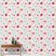 赤いエレガント青の野花ポピーの花の柄の壁紙は、白い背景にパステルレッドとブルーの花と緑の葉のパターンを特徴とする。ホームデッキ、バスルーム、壁のアクセントとトリートメント、オフィスの装飾とパーティーの装飾に最適。Evco Studio www.zazzle.com/store/evcostudioによって作成