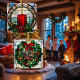 赤いクリスマスフェイクCNDLステンドグラスの窓にしがみつく ウィンドウサイン