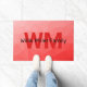赤いグラデーションのジオメトリメッシュパターンモノグラム ドアマット