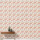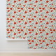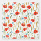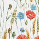 赤いケシの花、ケシの離れ花、トウモロコシの花、ライ麦の耳、小さなカモミールの花、白い背景の水色のスケッチパターン