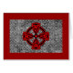 黒と白のダメージ加工された背景に赤いケルト十字架が特徴
