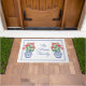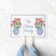 赤いゲラニウムの水色の陳腐な花瓶 ドアマット