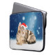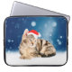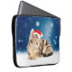 赤いサンタ帽をかぶった可愛い猫クリスマス雪ラップトップスリーブ。