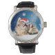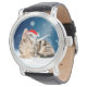 赤いサンタ帽をかぶった可愛い猫クリスマス雪 腕時計