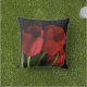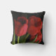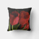 この美しい屋外の枕プレゼントの深紅の赤いチューリップおよび緑の葉は純粋で黒い背景で置きました。 イメージは背部で繰り返されます。