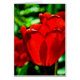 緑の日に照らされた背景に3つの赤いチューリップの花のグループ。テクスチャスタイルの写真。文字-パズル – 一部のtシャツ製品に追加。