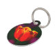 濃い輝く緑の背景と他のチューリップの花のピンクのぼやけた斑点に対して赤いチューリップ花。火の塊、ライブサンライトのゴブレット。新しい人生の象徴。輝き、照らし、照射しインスパイアて!