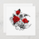 ギア付きコンター、機械的な三日月飾、黒いスパイク付き茎と白い背景に葉のと赤いバラを持つ。スチームパンク