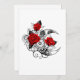 ギア付きコンター、機械的な三日月飾、黒いスパイク付き茎と白い背景に葉のと赤いバラを持つ。スチームパンク