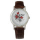 ギア付きコンター、機械的な三日月飾、黒いスパイク付き茎と白い背景に葉のと赤いバラを持つ。スチームパンク