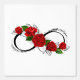 白い背景に赤いバラと黒い茎を持つ無限大のシンボル。デザインとバラタトゥースタイル。ゴシックスタイル。トライバルグラフィックス。スタイルスケッチ。