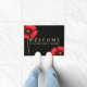 赤いポピーフローラファミリー名黒の書式 ドアマット