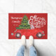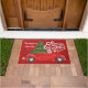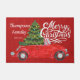 美し伝統的い赤いラップと赤いトラックのdoormat.家族の名前を持つクリスマス形式のデザイン。完璧なコントラストは、赤いバーラップ上の白い文字エレガントによって。