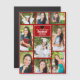 赤いモダン大学院写真マグネットカードは、9人の学生お気に入りの写真を収めたカード。この卒業発表は、2023年のクラスのための高校または大学の名前の上品な白いタイポグラフィを特徴としている。カスタマイズブラックグラードキャップより下の卒業年の磁石。2枚の横向き写真、5枚の縦向き写真、2枚の正方形の写真が特徴。